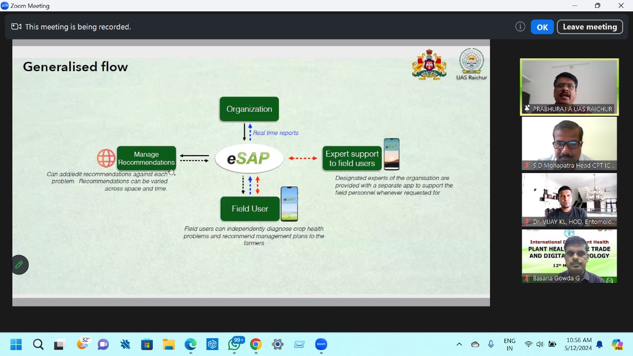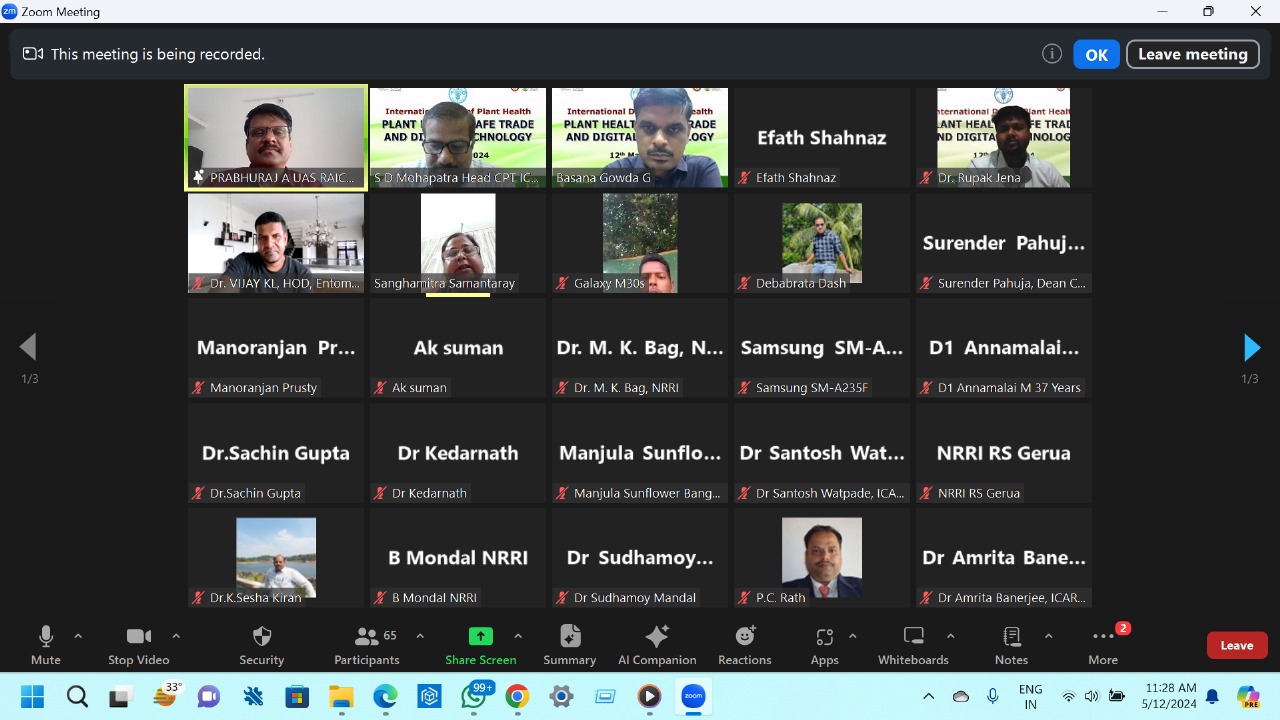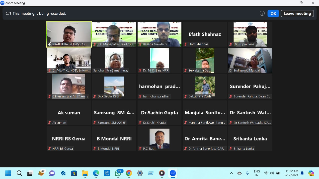 भाकृअनुप-राष्ट्रीय चावल अनुसंधान संस्थान, कटक ने 12 मई, 2024 को “पौधा स्वास्थ्य, सुरक्षित व्यापार और डिजिटल प्रौद्योगिकी” विषय के तहत अंतर्राष्ट्रीय पादप स्वास्थ्य दिवस मनाया। संयुक्त राष्ट्र द्वारा इस दिन की घोषणा के अनुरूप, कार्यक्रम में खाद्य सुरक्षा, सुरक्षित व्यापार सुनिश्चित करने और स्थायी अर्थव्यवस्थाओं और आजीविका को बढ़ावा देने के लिए पौधों के स्वास्थ्य को बनाए रखने के महत्वपूर्ण महत्व को रेखांकित किया गया। अंतर्राष्ट्रीय पादप स्वास्थ्य दिवस के उत्सव को आभासी मोड द्वारा आयोजित किया गया जिसमें देश भर के वैज्ञानिकों सहित 80 से अधिक प्रतिभागियों ने भाग लिया। फसल सुरक्षा प्रभाग के अध्यक्ष डॉ. एस.डी. महापात्र ने पौधों के स्वास्थ्य के महत्वपूर्ण महत्व और मनुष्यों और पर्यावरण दोनों के लिए इसके असंख्य लाभों के बारे में जागरूकता बढ़ाने पर व्याख्यान दिया। चर्चा के दौरान, यूएएस रायचूर, कर्नाटक के प्रमुख और प्रोफेसर एवं प्रख्यात कीटविज्ञानी डॉ. प्रभुराज ए. ने एक विशेष व्याख्यान दिया। डॉ. प्रभुराज ने “ईएसएपी-फसल स्वास्थ्य प्रबंधन के लिए एक आईसीटी मंच” विषय पर व्याख्यान दिया जिसमें किसानों के लिए पौधों के स्वास्थ्य को प्रभावी ढंग से प्रबंधित करने और उनकी आर्थिक संभावनाओं को बढ़ाने के लिए व्यावहारिक, क्षेत्र-आधारित समाधानों पर केंद्रित था। निदेशक (प्रभारी) डॉ. (श्रीमती) संघमित्रा सामंतराय ने अपने संबोधन में पौधों के गहन महत्व और अर्थव्यवस्था में उनके योगदान को रेखांकित किया और प्रतिभागियों से अपने आसपास के लोगों और किसानों को पौधों के स्वास्थ्य के महत्वपूर्ण महत्व, टिकाऊ कृषि पद्धतियाँ और आर्थिक समृद्धि के बारे में जागरूक करने का आग्रह किया।