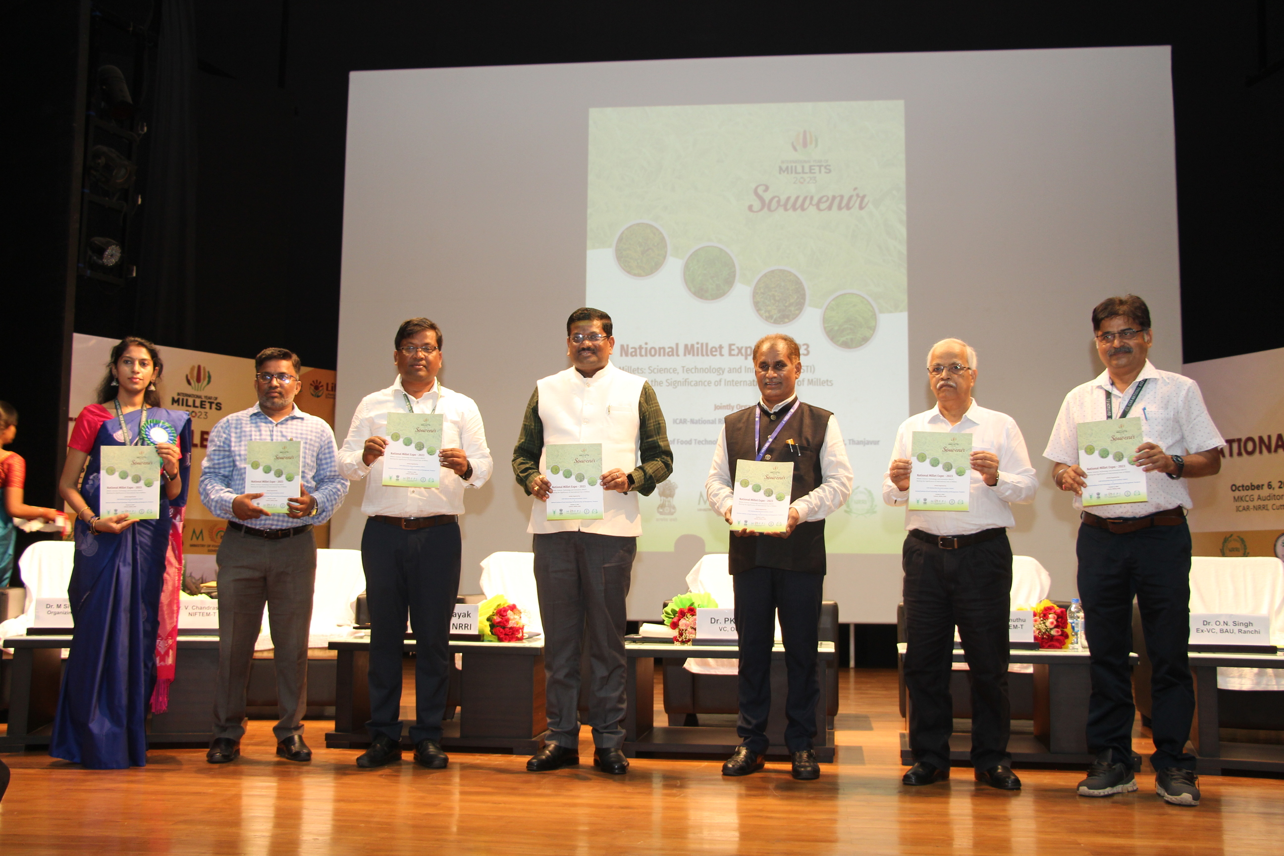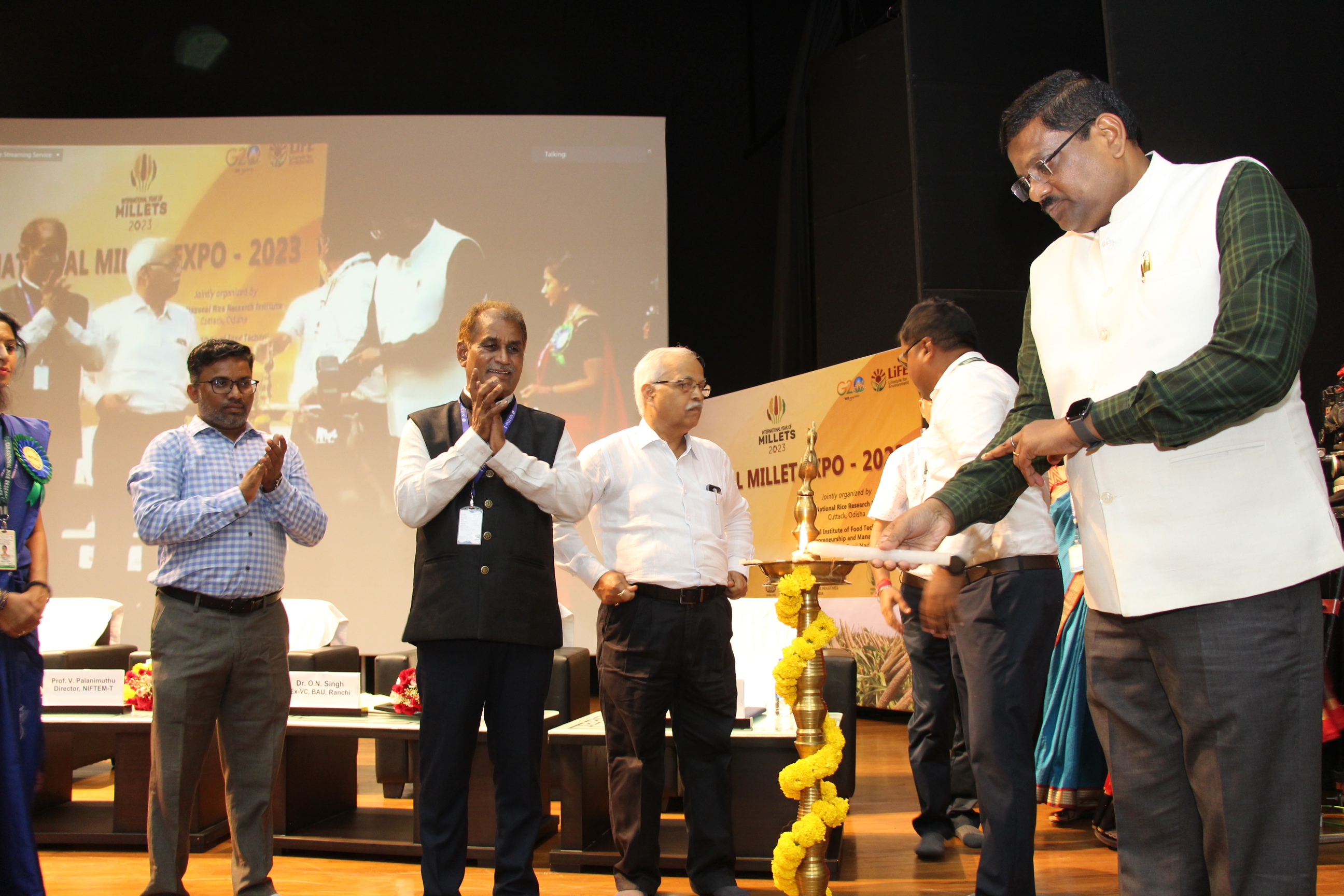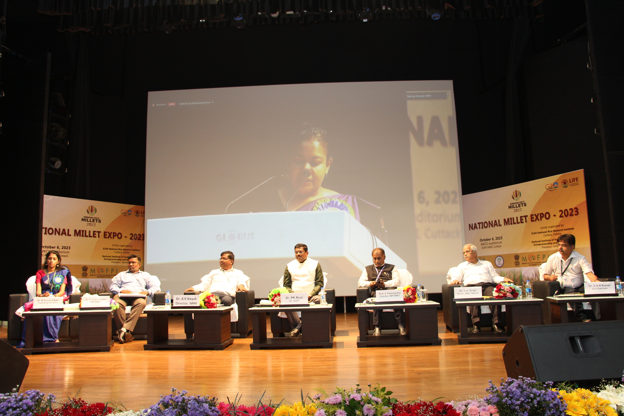 स्थिर कृषि को बढ़ावा देने और मिलेट के पोषण मूल्य को रेखांकित करने के उद्देश्य से एक महत्वपूर्ण सहयोग में, राष्ट्रीय खाद्य प्रौद्योगिकी उद्यमिता और प्रबंधन संस्थान, तंजावुर तथा भाकृअनुप-राष्ट्रीय चावल अनुसंधान संस्थान, कटक द्वारा संयुक्त रूप से 6 अक्टूबर, 2023 को एनआरआरआई, कटक के एमकेसीजी प्लेटिनम जुबली सभागार में ‘राष्ट्रीय मिलेट एक्सपो-2023’ का आयोजन किया गया।