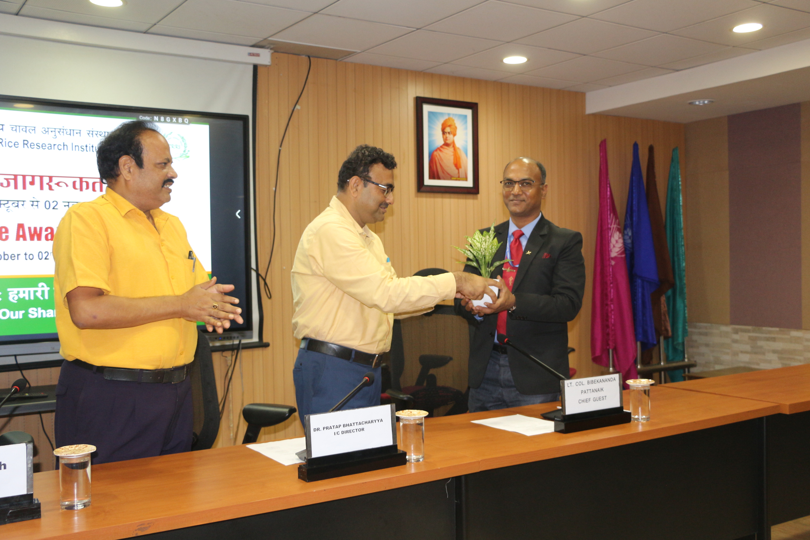 The observance began with the Integrity Pledge, administered by Dr. G.A.K. Kumar, Director, ICAR–CRRI, followed by a workshop-cum-seminar addressed by Dr. Sunil Kumar Das, CFAO, ICAR–NIASM, Baramati, who emphasized transparency and ethical governance.