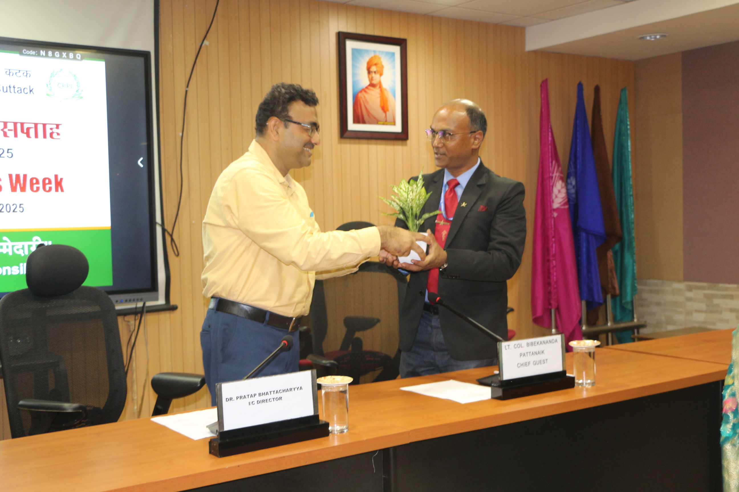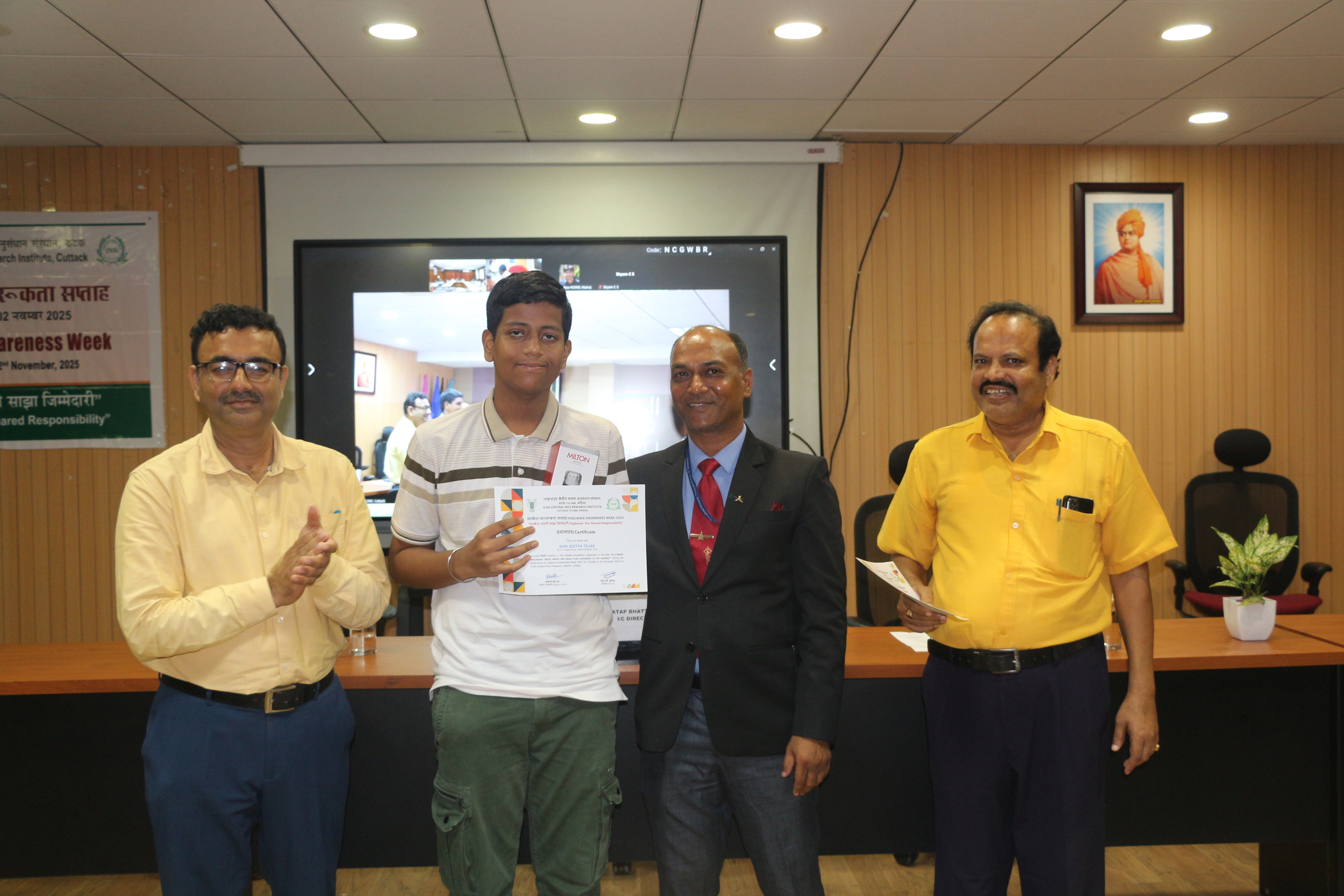 The closing ceremony on 3rd November 2025 was held in the presence of Lt. Col. Bibekananda Pattanaik, Registrar, Institute of Physics, Bhubaneswar, as Chief Guest, who delivered an insightful speech on preventive vigilance and the importance of proactive steps in fostering transparency and ethics. The results of various competitions were announced, and prizes were distributed during the valedictory function, chaired by Dr. Pratap Bhattacharyya, Director (I/c), ICAR–CRRI, and co-chaired by Dr. P.C. Rath, Vigilance Officer, ICAR–CRRI. At the end, Mrs. Rosalin Swain, Senior Technical Officer offered the formal vote of thanks.