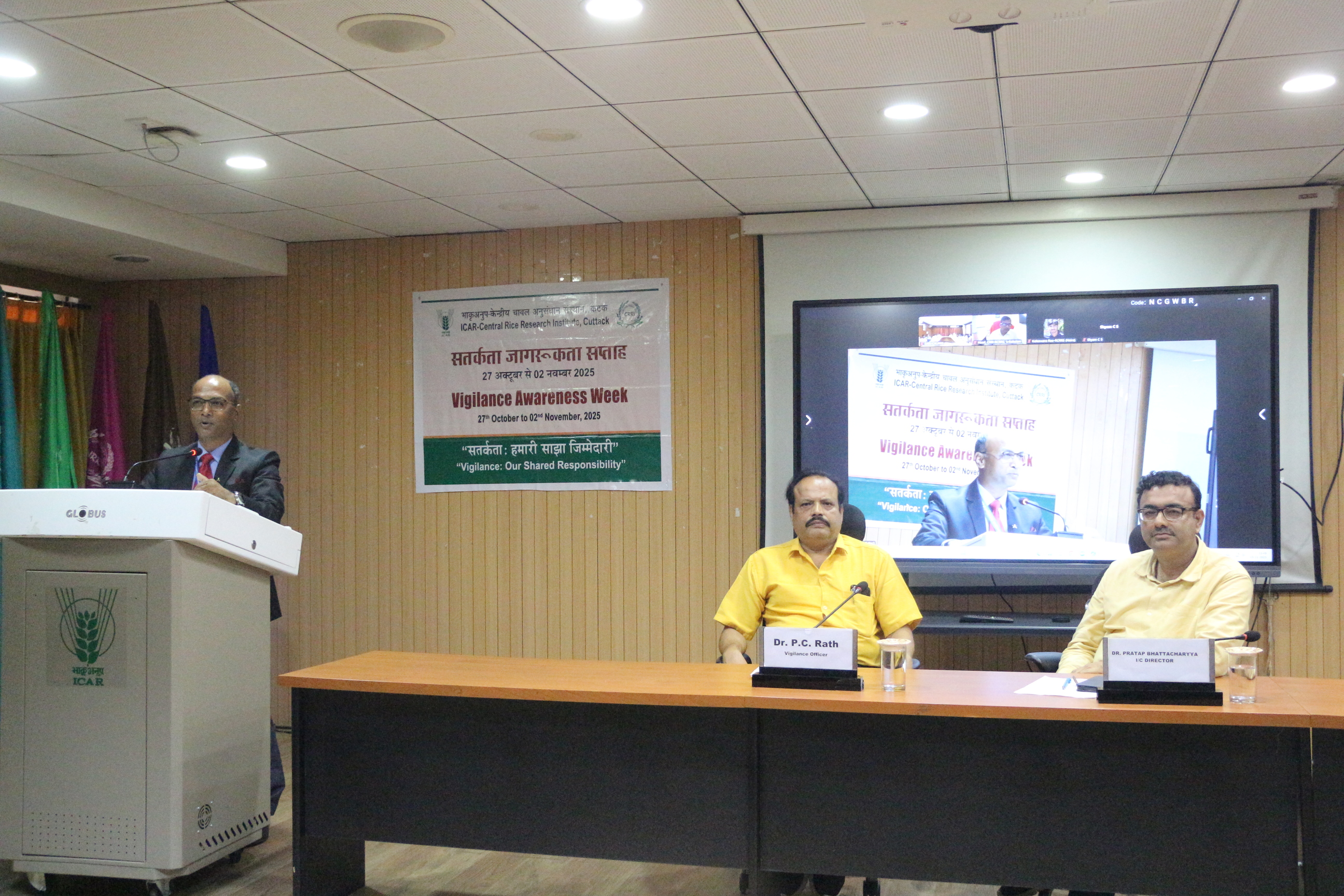 Vigilance Awareness Week–2025 was observed at ICAR–CRRI, Cuttack, from 27th October to 2nd November 2025 on the theme “Vigilance: Our Shared Responsibility” (सतर्कता: हमारी साझा जिम्मेदारी), in line with the Central Vigilance Commission’s initiative.