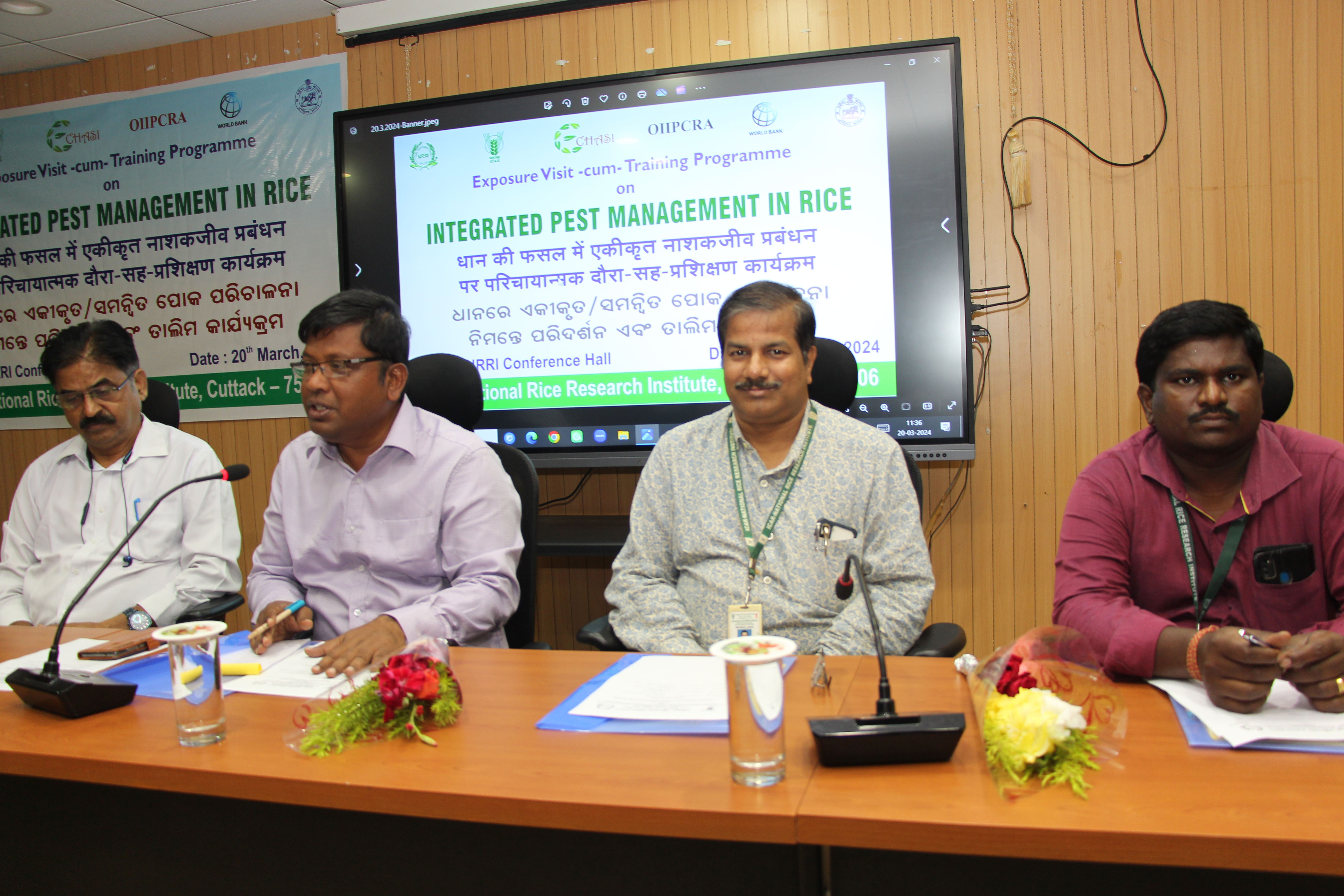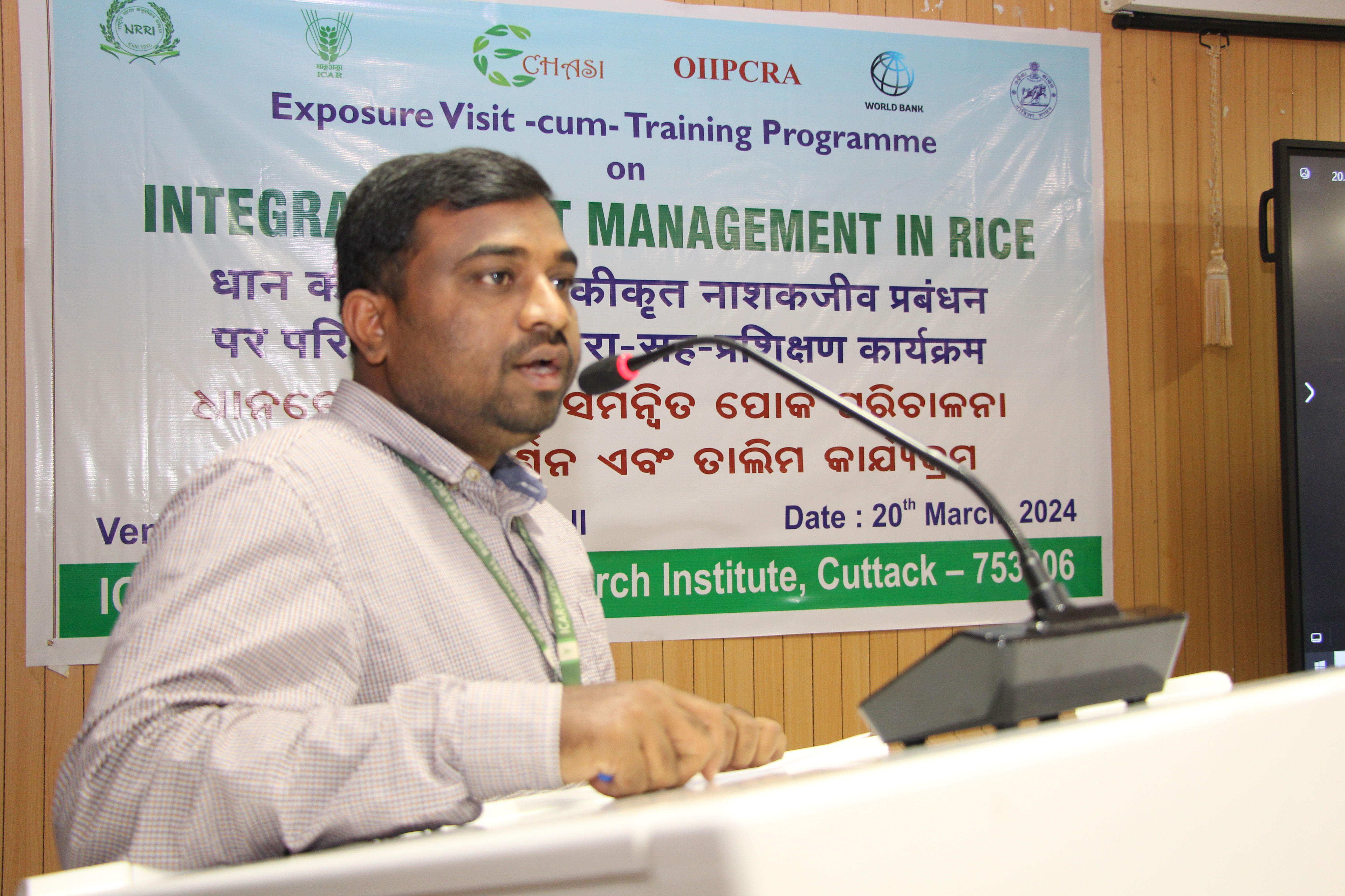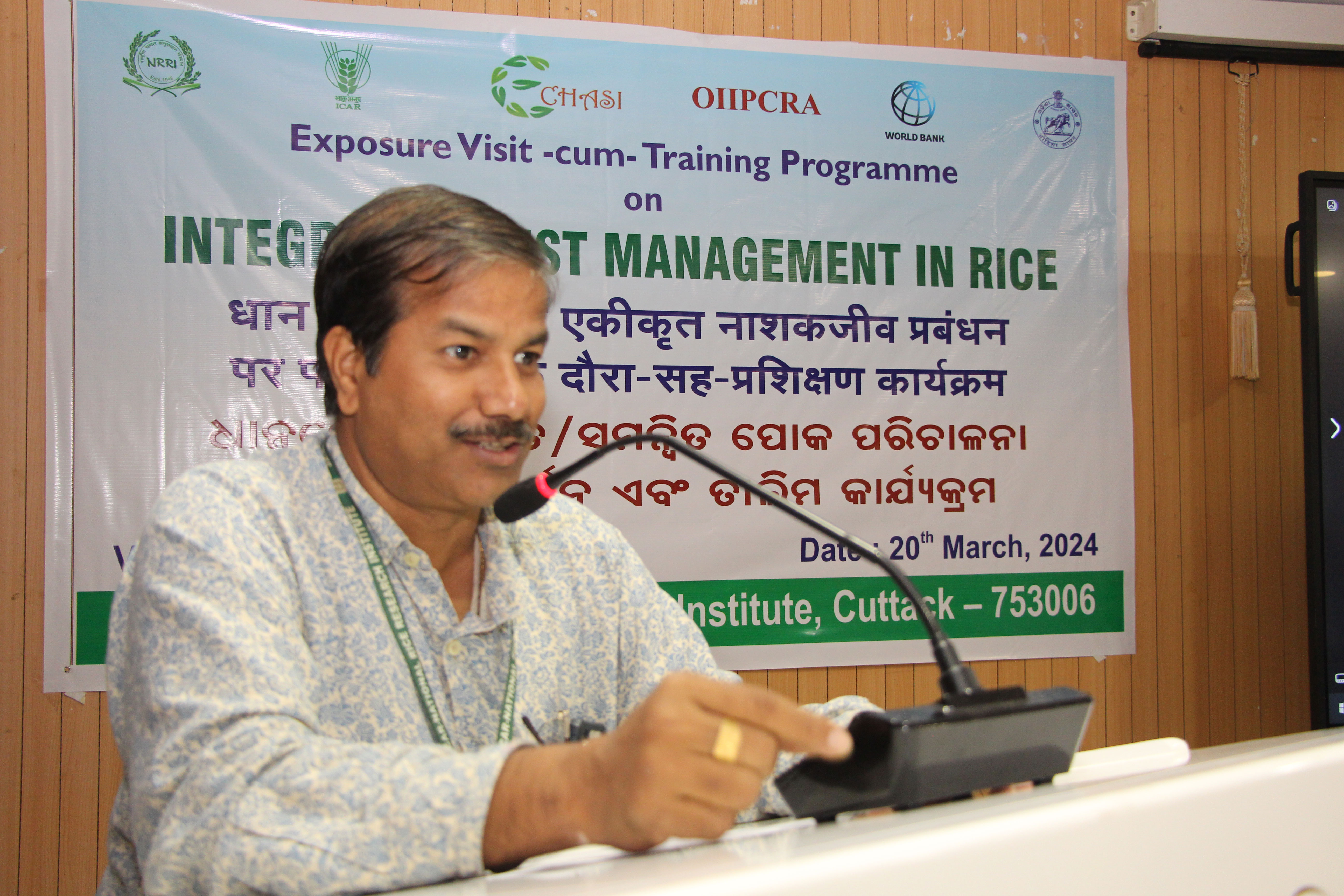 भाकृअनुप-राष्ट्रीय चावल अनुसंधान संस्थान, कटक में ‘चावल में एकीकृत कीट प्रबंधन (आईपीएम)’ पर एक परिचायात्मक-सह-प्रशिक्षण कार्यक्रम 20 मार्च 2024 को ई-सीएचएएसआई (स्थायी गहनता के माध्यम से जलवायु परिवर्तन के लिए छोटे धारकों की अनुकूलनीयता बढ़ाना डिजिटल संचालित ज्ञान प्रसार परियोजना) के तहत आयोजित किया गया। इस कार्यक्रम में भद्रक जिले के सहाड़ा और रजुआलिबिंधा गांवों के 30 प्रगतिशील किसानों ने भाग लिया। किसानों को विभिन्न पहलुओं पर प्रशिक्षण दिया गया, जिसमें विभिन्न कीटों, चावल के रोगों और उनके नुकसान के लक्षणों पर ज्ञान को समृद्ध करना, पर्यावरण के अनुकूल चावल के कीट और रोग प्रबंधन के लिए जैव नियंत्रण कारकों और जैव-कीटनाशकों को खेत में उपयोग करना, कीट प्रबंधन के लिए उनका उपयोग, कीटों के प्राकृतिक शत्रुओं का बड़े पैमाने पर उत्पादन शामिल है। किसानों को प्रकाश जाल और फेरोमोन जाल जैसी कीट निगरानी तकनीकों का उपयोग करने और बेहतर कीट और रोग नियंत्रण प्राप्त करने के लिए उपयुक्त नोजल के चयन के लिए भी जागरूक किया गया। चावल के विभिन्न कीटों, बीमारियों और सूत्रकृमि की पहचान करने के लिए एनआरआरआई द्वारा विकसित आईसीटी उपकरण, राइसएक्सपर्ट ऐप का उपयोग करने के लिए किसानों को प्रोत्साहित करने पर विशेष जोर दिया गया। ड्रोन-आधारित कीटनाशक अनुप्रयोग, फसल सुरक्षा में हाल के दिनों में हुए विकास को एनआरआरआई फार्म में प्रदर्शित किया गया है। किसानों ने अपने अनुभव साझा किए और परियोजना स्थलों पर भाकृअनुप-एनआरआरआई द्वारा विकसित की गई विभिन्न प्रौद्योगिकियों की सराहना की। भाकृअनुप-एनआरआरआई, कटक के निदेशक डॉ.ए.के. नायक और ई-सीएचएएसआई परियोजना के प्रधान अन्वेषक ने ई-लर्निंग प्लेटफार्मों के विकास पर जोर दिया जो उन्नत आईसीटी के युग में ऑनलाइन शिक्षण के माध्यम से कीट प्रबंधन में किसानों के कौशल में सुधार कर सकते हैं। उन्होंने किसानों को वास्तविक समय के आधार पर कीटों और बीमारियों की समस्याओं के समाधान के लिए वैज्ञानिकों से जुड़ने के लिए एक समर्पित व्हाट्सएप ग्रुप बनाने की भी सलाह दी। भाकृअनुप-एनआरआरआई के फसल सुरक्षा प्रभाग के अध्यक्ष एवं प्रशिक्षण कार्यक्रम के पाठ्यक्रम निदेशक डॉ. एस.डी. महापात्र ने किसानों और प्रतिभागियों को पाठ्यक्रम कार्यक्रम के बारे में विस्तार से जानकारी दी। वैज्ञानिक डॉ. एम. अन्नामलाई और डॉ. रघु एस ने फसल सुरक्षा प्रभाग और ई-चासी परियोजना के कर्मचारियों के सहयोग से इस प्रशिक्षण कार्यक्रम का समन्वय किया।