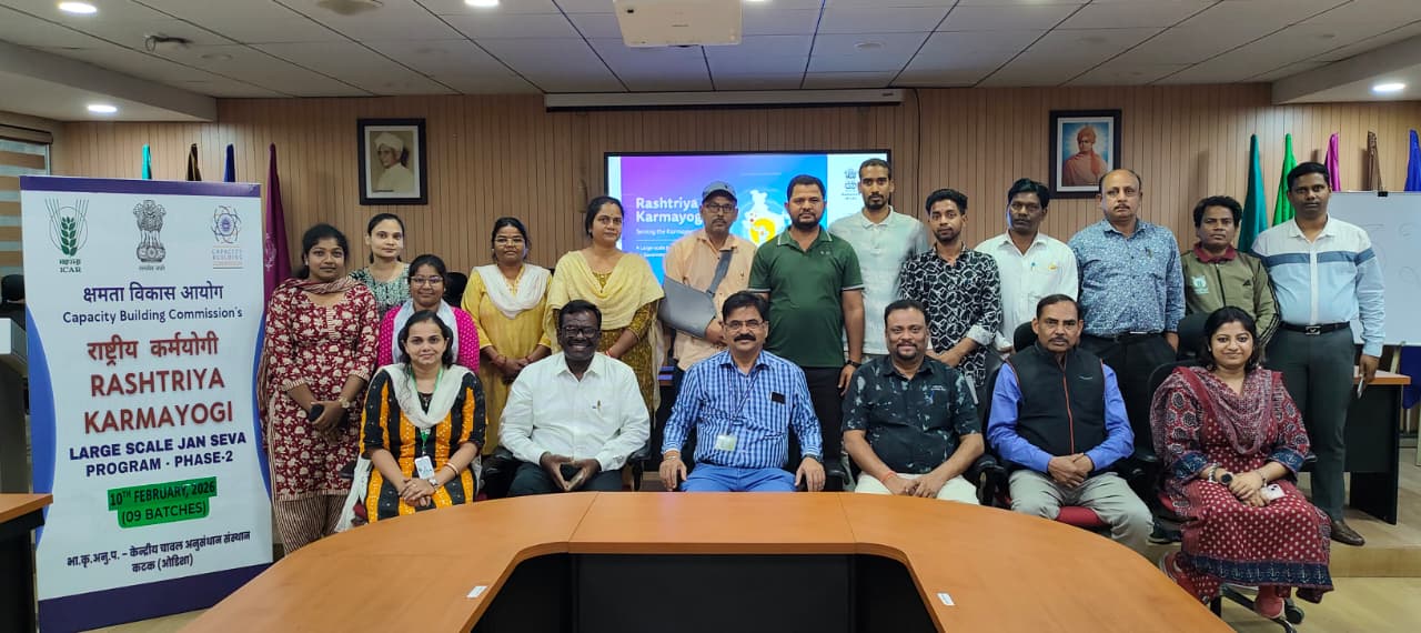ICAR–Central Rice Research Institute (CRRI), Cuttack, successfully organized the 9th batch of the Rashtriya Karmayogi Large-Scale Jan Seva Programme (Phase II) for its staff on 10th February 2026. With this batch, a total of 260 employees have completed the mandatory training across all nine batches conducted so far. The programme also included employees from ICAR–NBPGR, Regional Station, Cuttack, and one scientist from ICAR–CSSRI, Haryana. All participants successfully completed the training. The programme was coordinated by Dr. P. Panneerselvam, Principal Scientist; Shri V. Ganesh Kumar, Senior Administrative Officer; and Shri Rishi Kant Singh, Senior Finance and Accounts Officer, who served as Master Trainers. It was organized with full support and guidance from Dr. GA K. Kumar, Director, ICAR–CRRI, Cuttack. Dr. Baijayanti Nayak and Shri Santhosh Sethi, Senior Technical Officers, also helped in organizing and conducting the programme smoothly. Participants expressed that the programme was very useful and that the topics were explained clearly. They also suggested that such motivational and skill-development programmes should be conducted regularly.