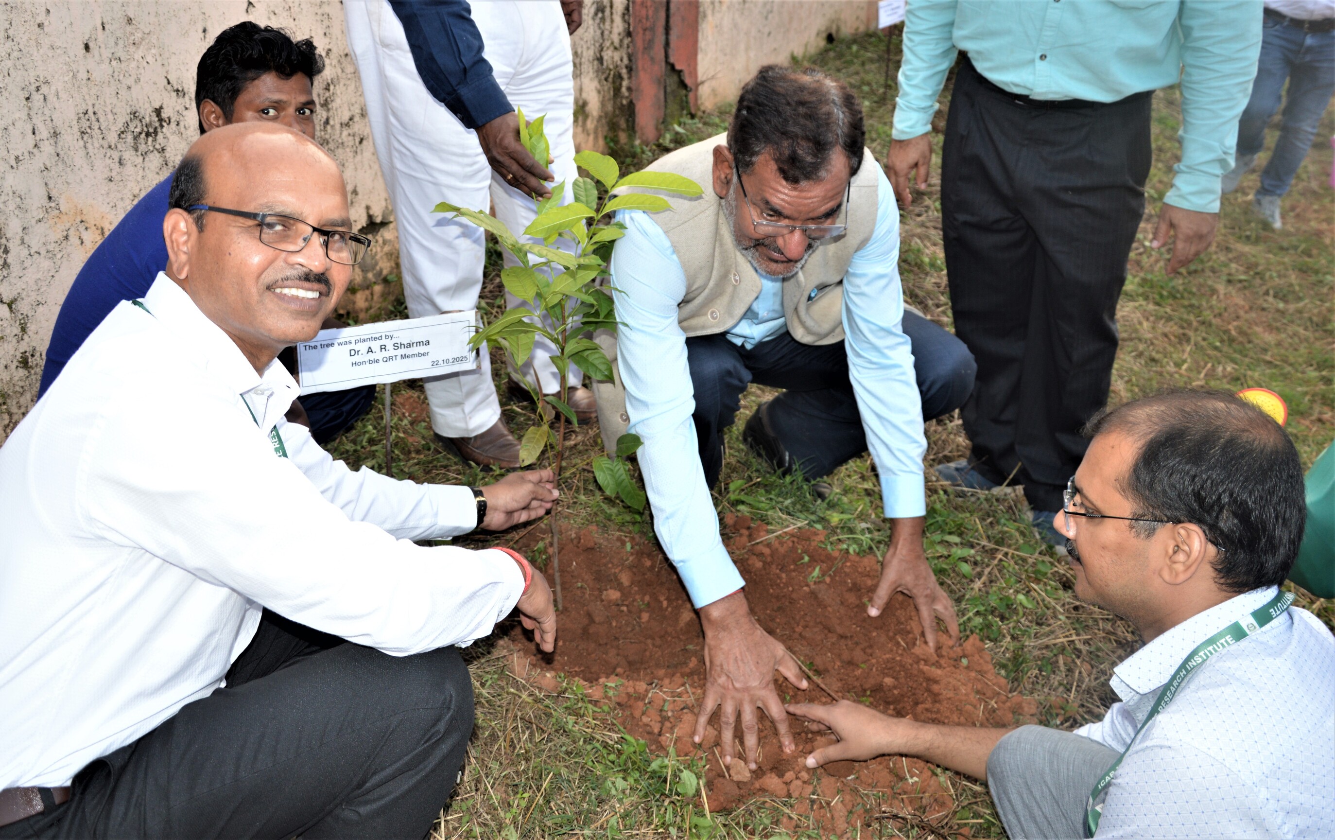Honourable QRT members, Dr. A.R. Sharma, Former Director Research, RLBCAU, Jhansi; and Dr. P. V. Satyanarayan, Director Research, ANGRAU, Andhra Pradesh along with Dr. P. Bhattacharya, Head, CPD and Dr. B. Mondal, Principal Scientist & I/c PME Cell from ICAR-CRRI, Cuttack visited ICAR–CRRI-CRURRS, Hazaribag on 22 October 2025. The programme commenced with a warm welcome address by Dr. N.P. Mandal, Head, CRURRS followed by a brief presentation on achievements and ongoing activities of the station for last five years. Honourable QRT members interacted with all the scientists of the stations and appreciated the ongoing research activities and suggested new research initiatives on export-oriented crop, rice-based cropping system, strengthening DSR and farm mechanization. Later, the QRT members visited experimental fields, various laboratories of the station to review the research facilities. All the dignitaries planted saplings at CRURRS campus. The same day they also visited farmer’s field at Charhi, Hazaribag. On 23 October 2025 the team visited ICAR-IARI, Jharkhand, visited experimental fields and interacted with faculties. Later, they proceeded to KVK, Koderma and interacted with scientist as well as visited their fields. The team also visited farmer’s field and addressed the farmers during a Kisan Gosthi organized at the village. On 24 October 2025 the team visited ICAR-IIAB, Ranchi and ICAR-NISA, Ranchi, visited laboratories and facilities and interacted with the scientific staffs for possible collaborations in academic and research activities.